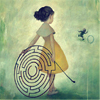 Description: girl with a hoop shaped as a labyrinth